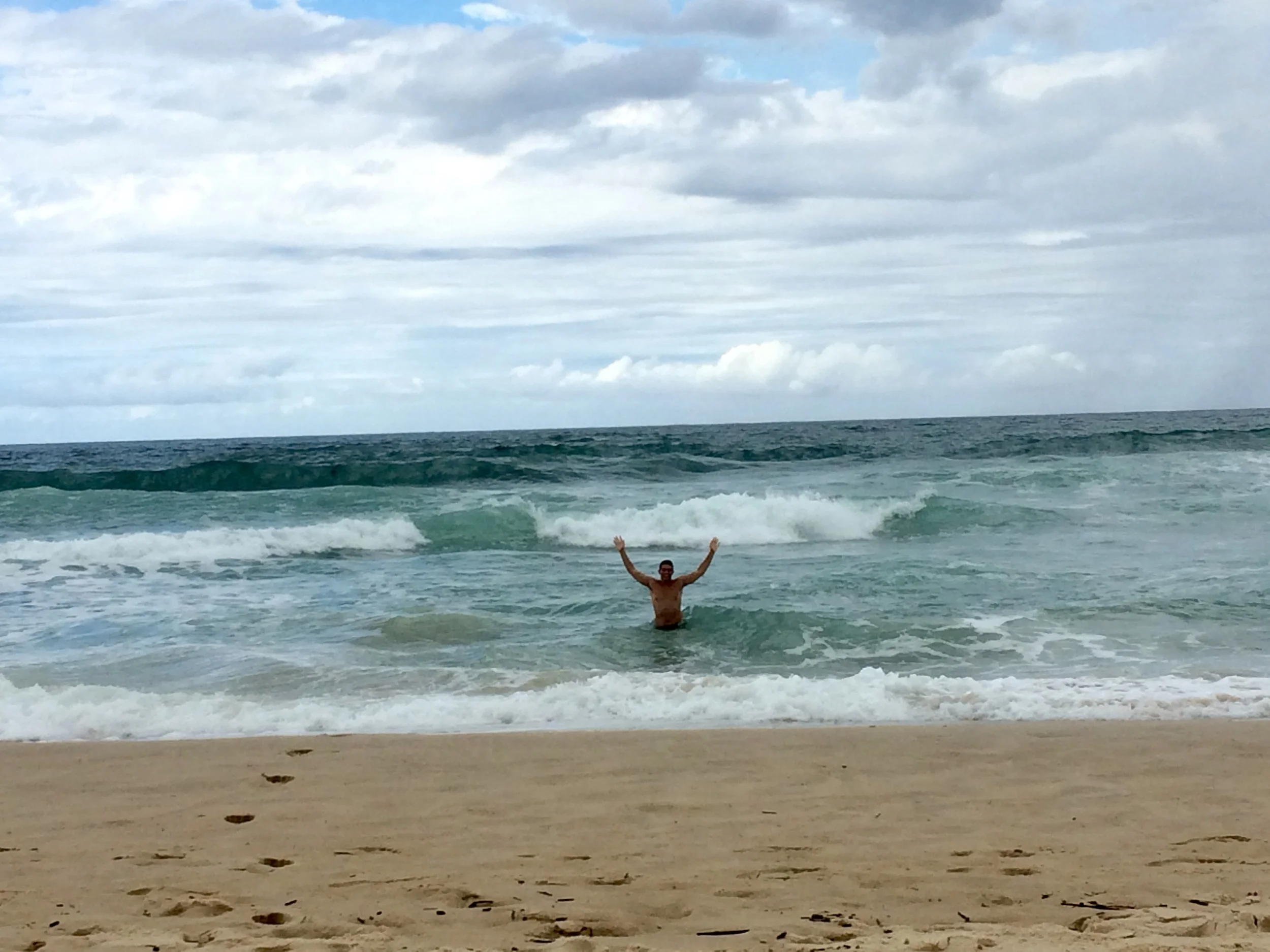 Sunday it was the best weather we had seen yet on the island: clear skies and a hot sun turned the beaches and boardwalks into sole-burning surfaces. After a morning run on the beach and a long and delicious breakfast overlooking the ocean, Stefje and I set off to explore the beach from a different perspective. Using a rented board as our mode of transport, we pushed in on one side of the beach and lazily let the current drag us along. Slowly but surely we entered the surfing zone, staying above the break to avoid getting thrashed and taking in the 360 degree panorama of paradise.