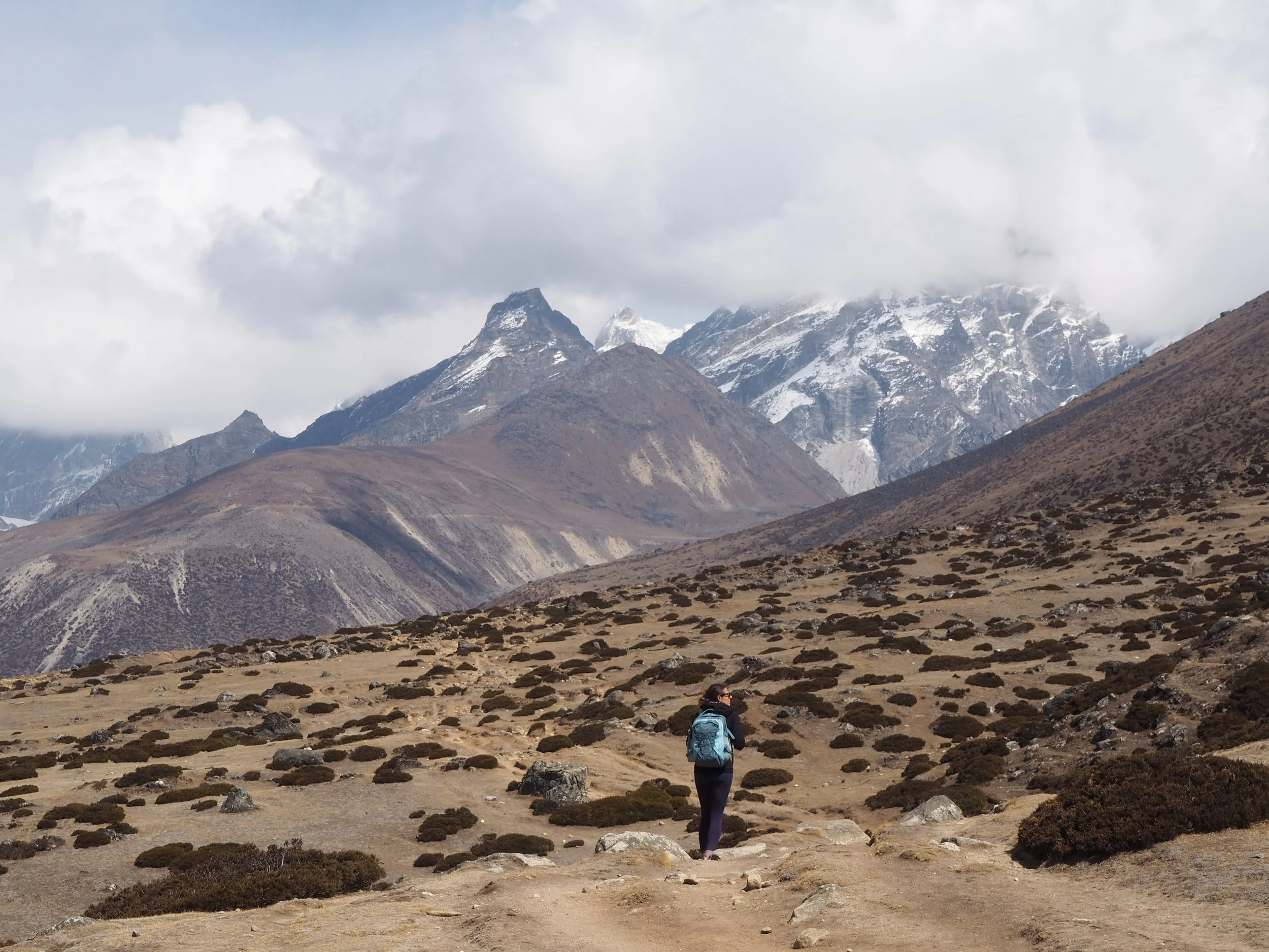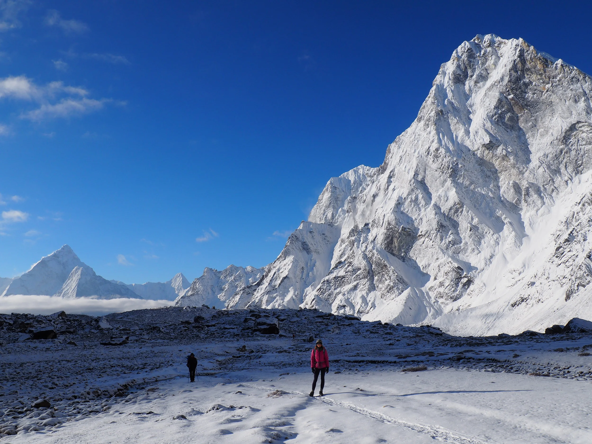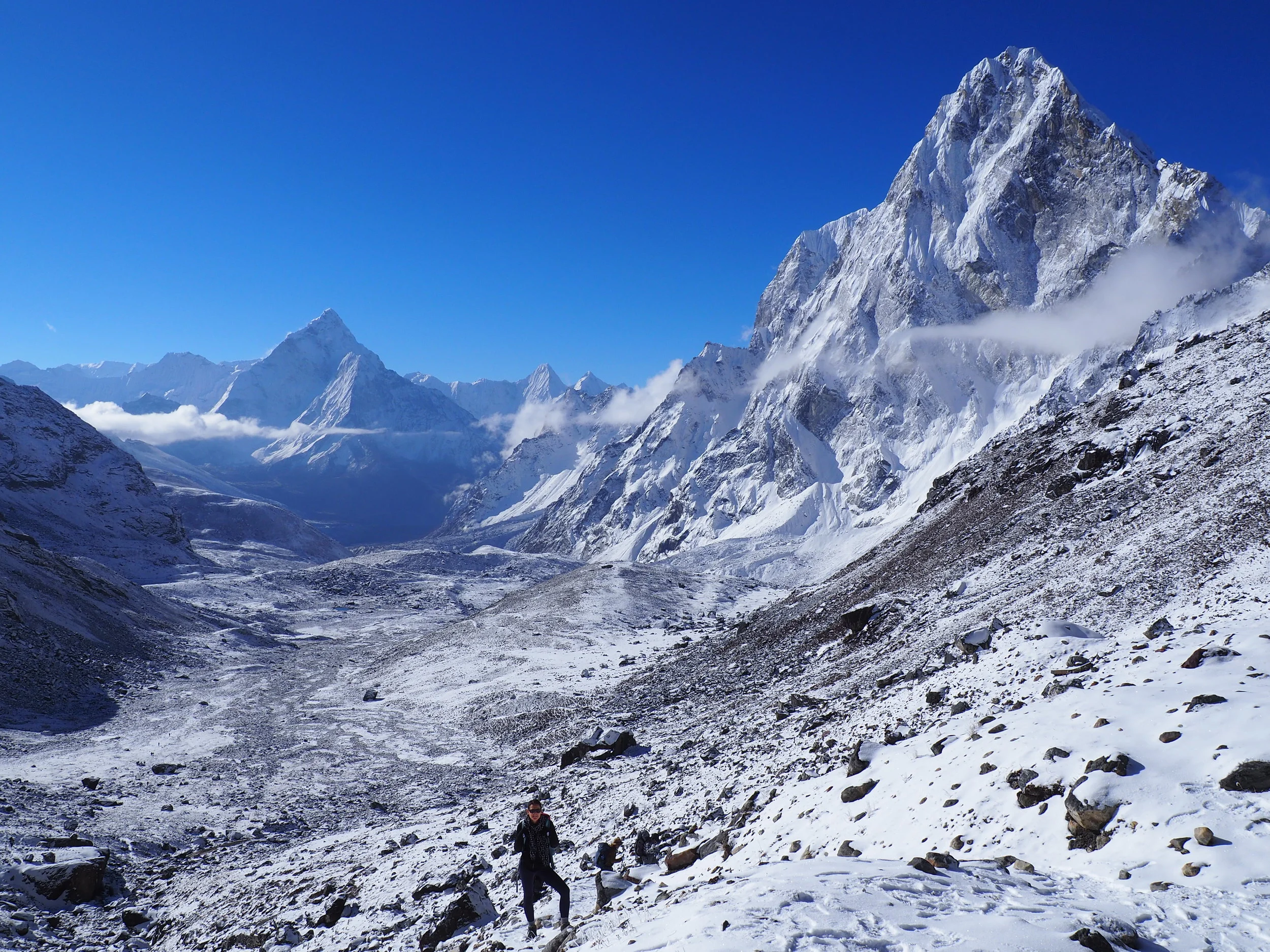 In Dingboche we turned back onto the Everest Base Camp trail, but our timing ensured we had the wide sloping valley to ourselves. Here the landscape eschewed almost all signs of life, making us feel like astronauts exploring the surface of the moon.