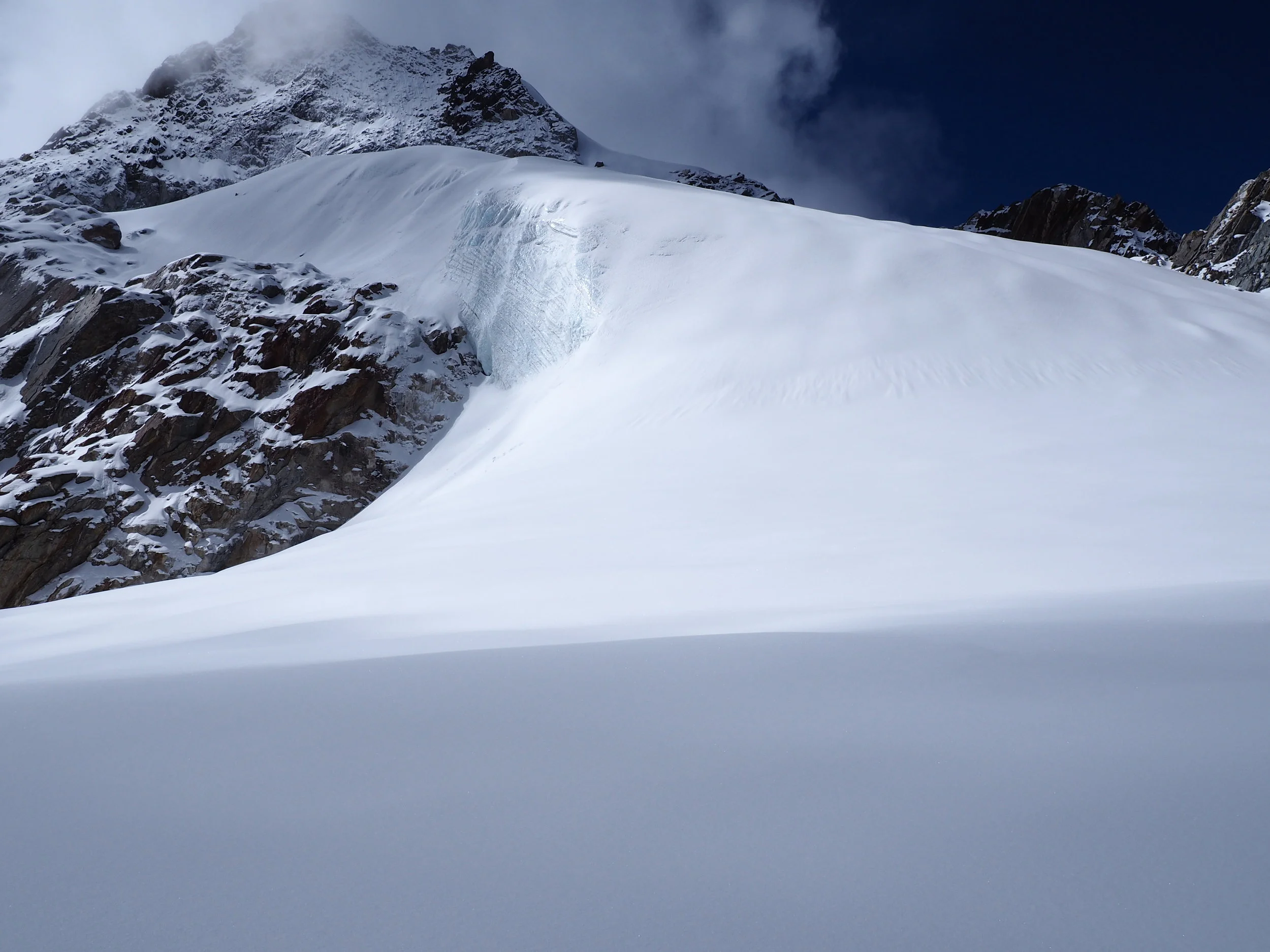 Within a few minutes we were walking across the pure white upper portion of this glacier, but now incoming cloud cover added an additional foe to be weary of. Eager to reach the topmost section of the pass and glimpse the choicest views across the other side before the clouds swallowed our entire universe, I pushed on ahead at a pace that was much too fast.