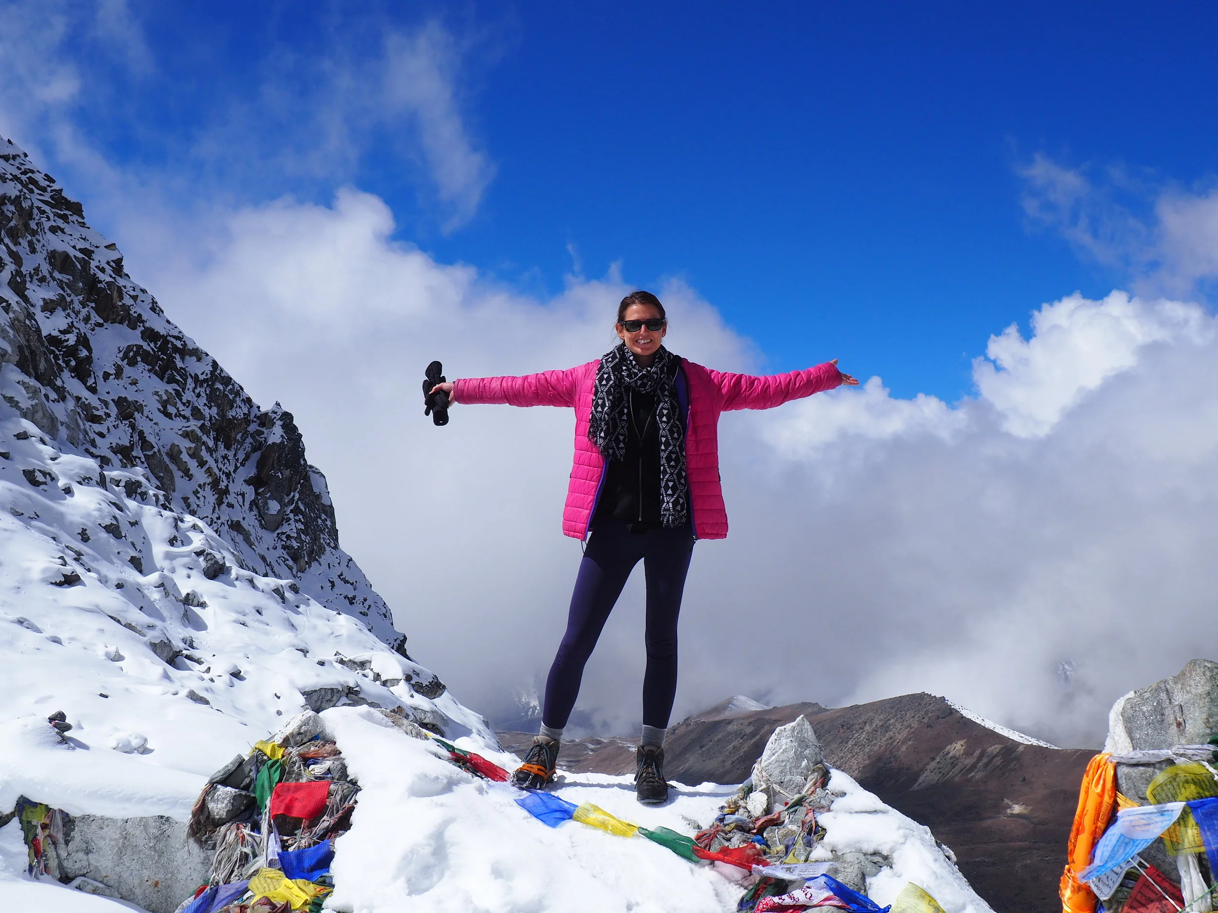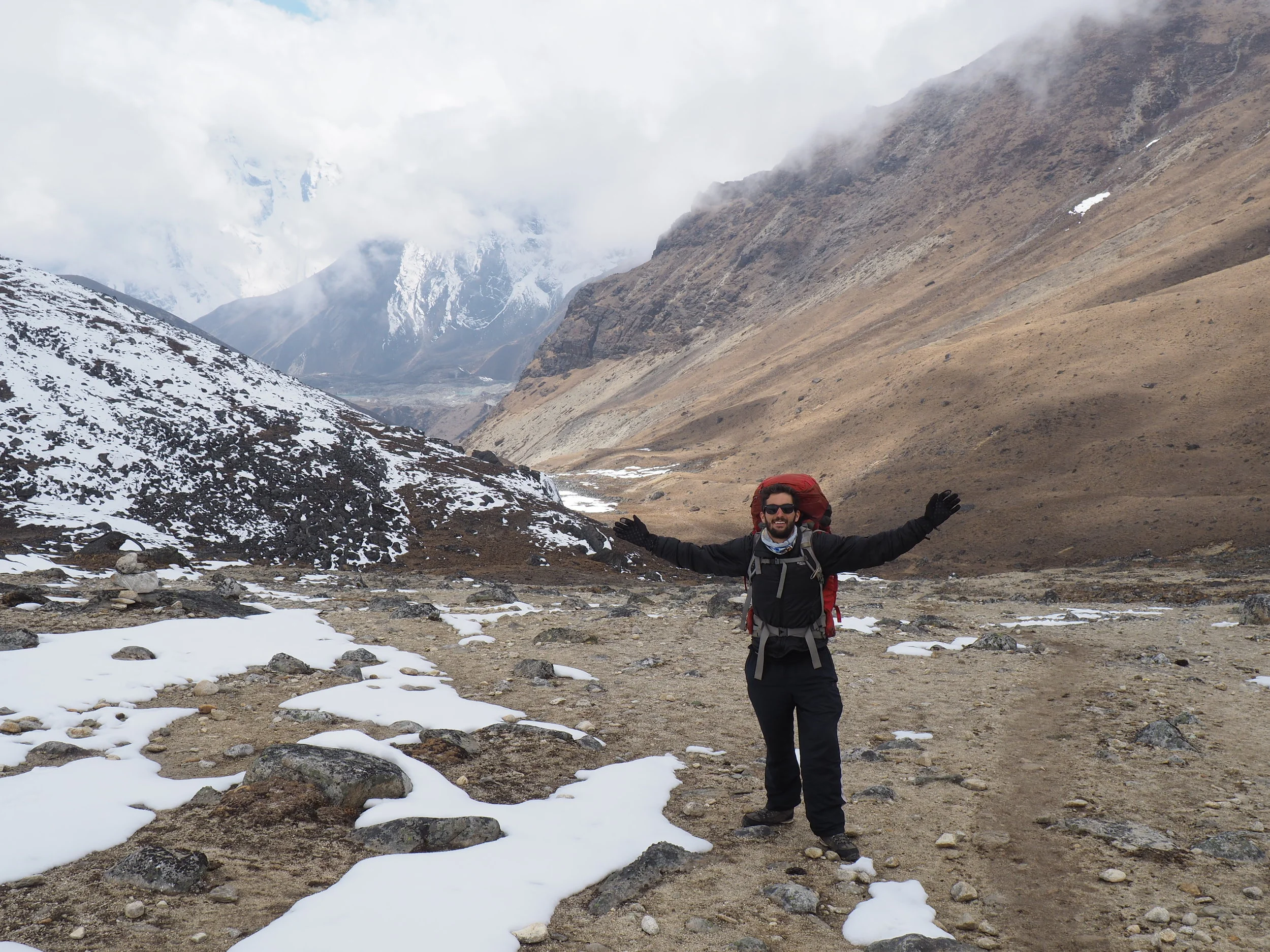 Yet now we had to turn around and come face to face with the Cho La pass, our fiercest obstacle yet, in less than ideal conditions. Despite the challenge, the trail instantly yielded stunning views. Cholatse was absolutely glowing in the morning light, its snowy crevices glistening and its peak pointing straight to heaven.