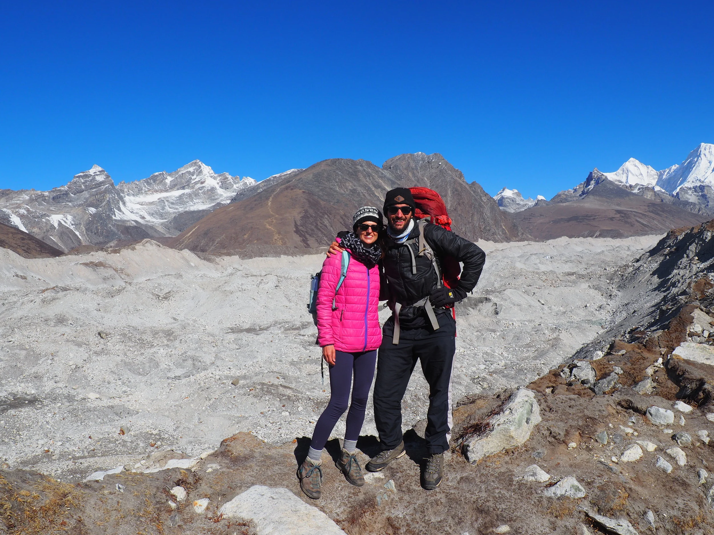 We paused for plenty of pictures and long stares at the glacier from every conceivable angle, then worked our way up the far slope at a torrid pace. Just 15 minutes later we were peering out from a hilltop vantage point over the town of Gokyo and its corresponding lake, grateful to have perfect weather that enabled us to fully appreciate the heavenly location that would serve as our base for the next 3 days.