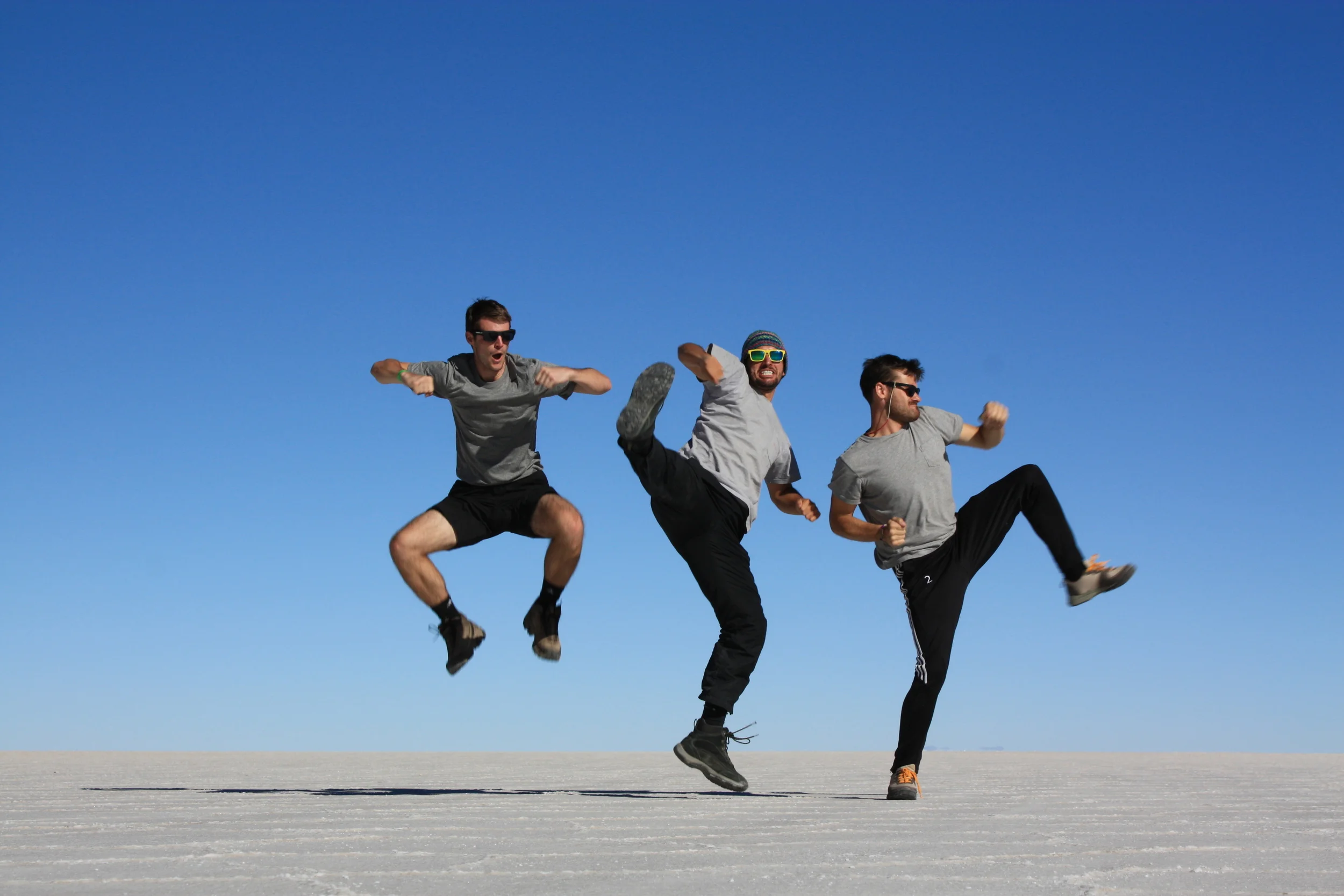 For lunch we stopped in at a restaurant where everything was made of salt, including the walls, tables, and chairs. Teo decided to avoid the 10 Boliviano charge to use the indoor table and instead served us up a hearty buffet in the outdoor sun. Soon after we were off to the first stop smack dab in the middle of nowhere, where we experimented with the tricks of perspective on the empty, flat landscape. Throughout the entire area of the Salar the elevation only changes by 1 meter, making it the perfect place to take some trippy photos.